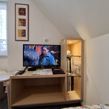 Nous avons choisi de bien équiper cette chambre pour accueillir confortablement les voyageurs pour un court séjour. La vue sur la roseraie de Saverne y est exceptionnelle.